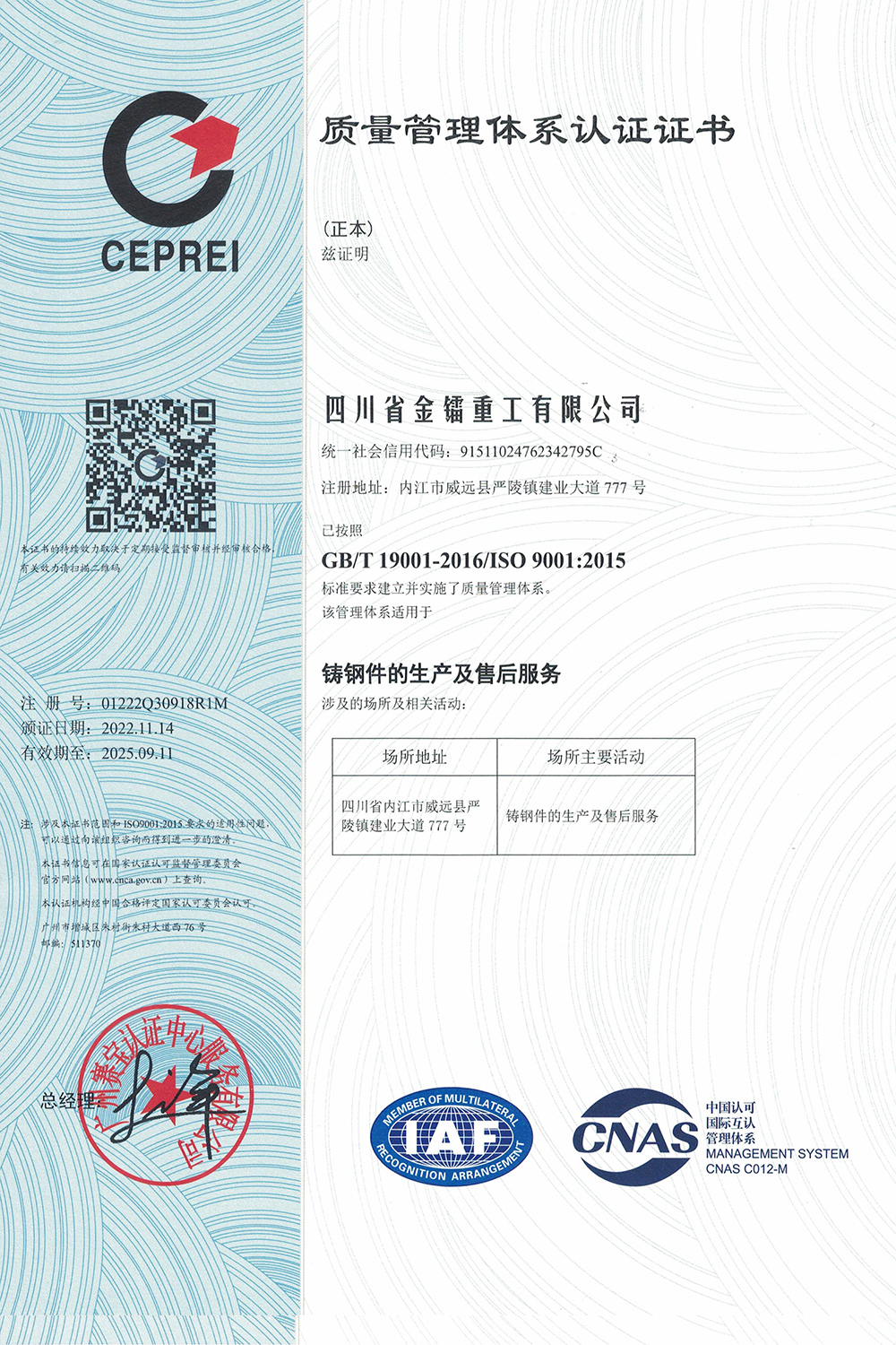 ISO9001-2015認證證書